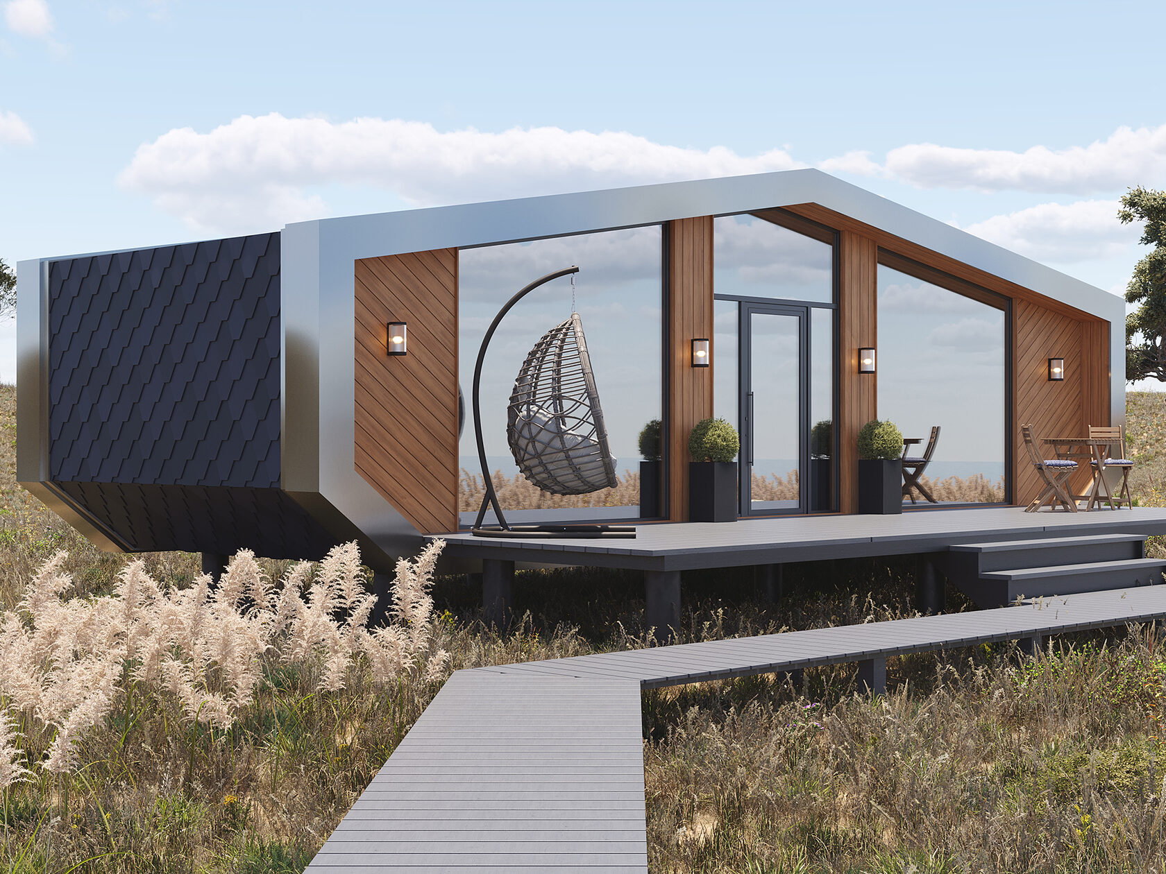 Проект подходит как для постоянного проживания, так и для временного отдыха на природе.