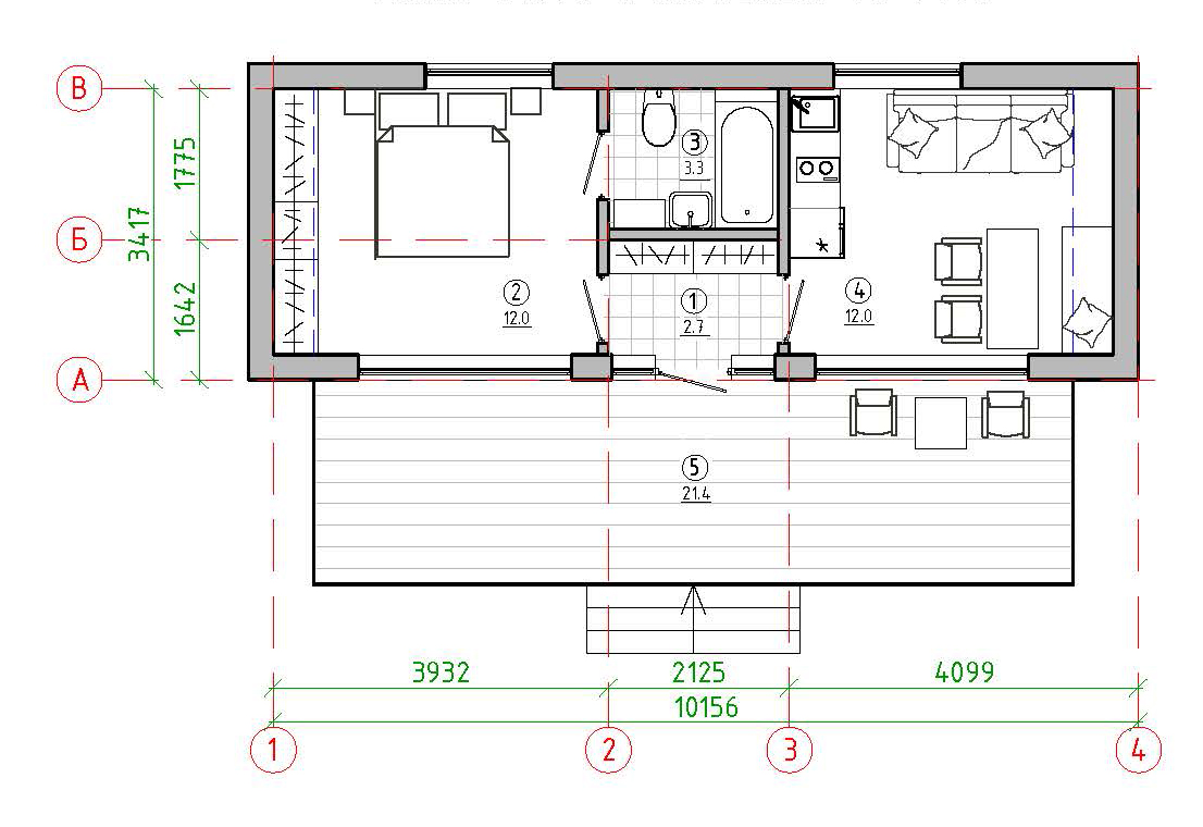 - 21,4 м² / площадь террасы