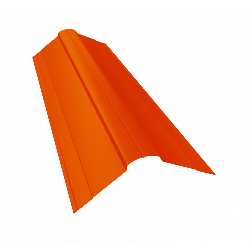 Планка конька фигурного предназначена для защиты от попадания влаги, грязи в подкровельное пространство и от срыва листов порывами ветра, закрывая листы металлочерепицы или профнастила на коньке и наружных переломах кровли.