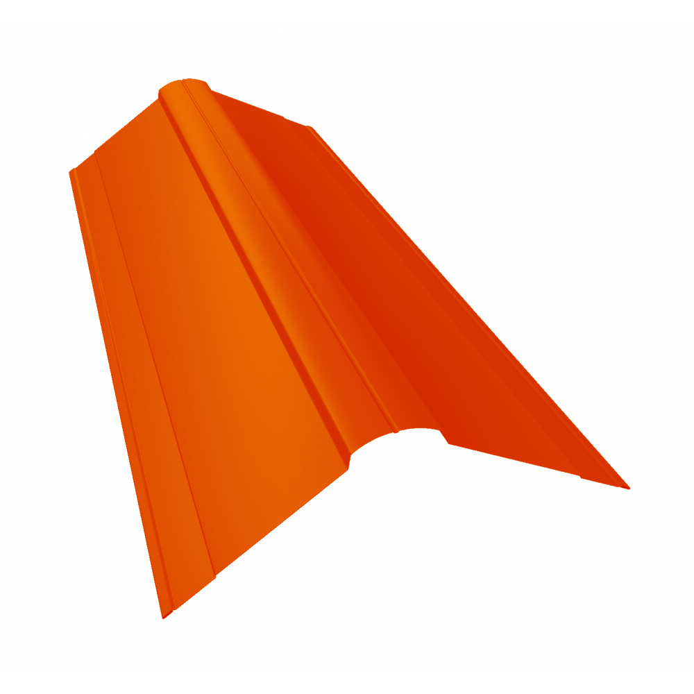 Планка конька фигурного предназначена для защиты от попадания влаги, грязи в подкровельное пространство и от срыва листов порывами ветра, закрывая листы металлочерепицы или профнастила на коньке и наружных переломах кровли.