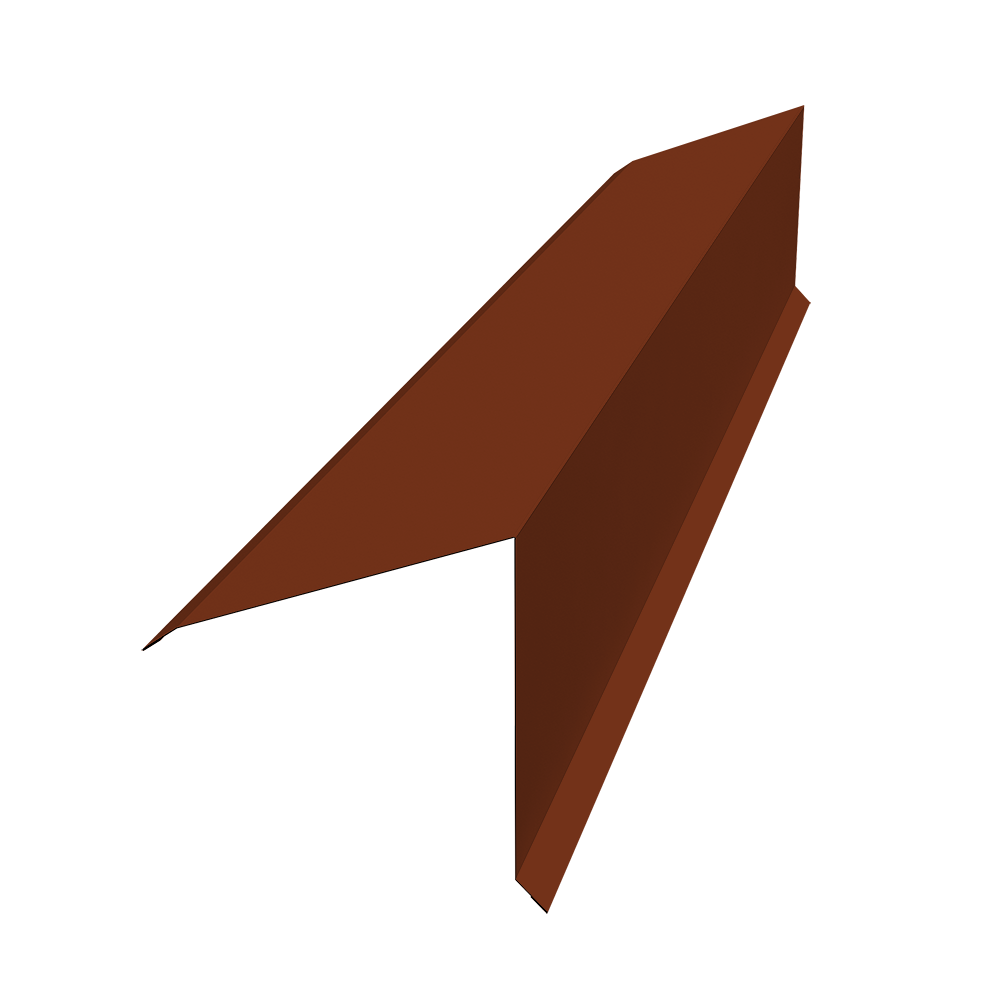 Планка конька односкатной кровли предназначена для защиты от попадания влаги, грязи в подкровельное пространство и от срыва листов порывами ветра, закрывая листы металлочерепицы или профнастила на коньке и наружных переломах кровли.