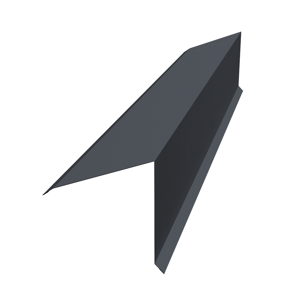 Планка конька односкатной кровли предназначена для защиты от попадания влаги, грязи в подкровельное пространство и от срыва листов порывами ветра, закрывая листы металлочерепицы или профнастила на коньке и наружных переломах кровли.