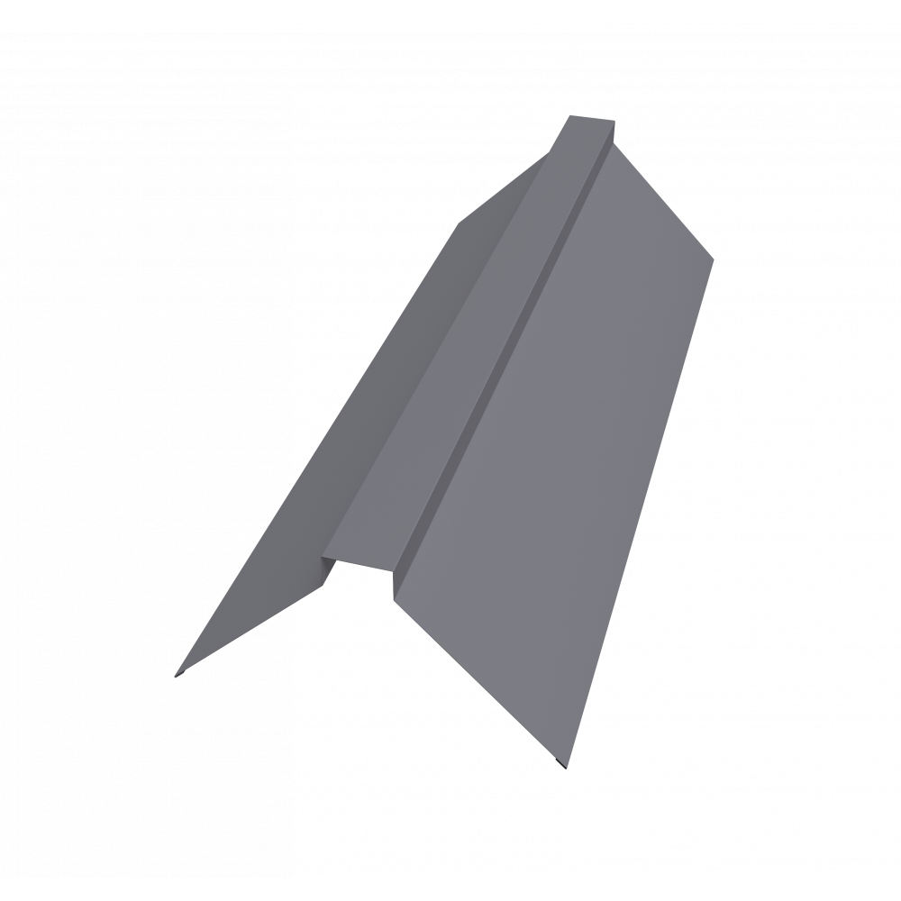 Планка конька плоского предназначена для защиты от попадания влаги, грязи в подкровельное пространство и от срыва листов порывами ветра, закрывая листы металлочерепицы или профнастила на коньке и наружных переломах кровли.