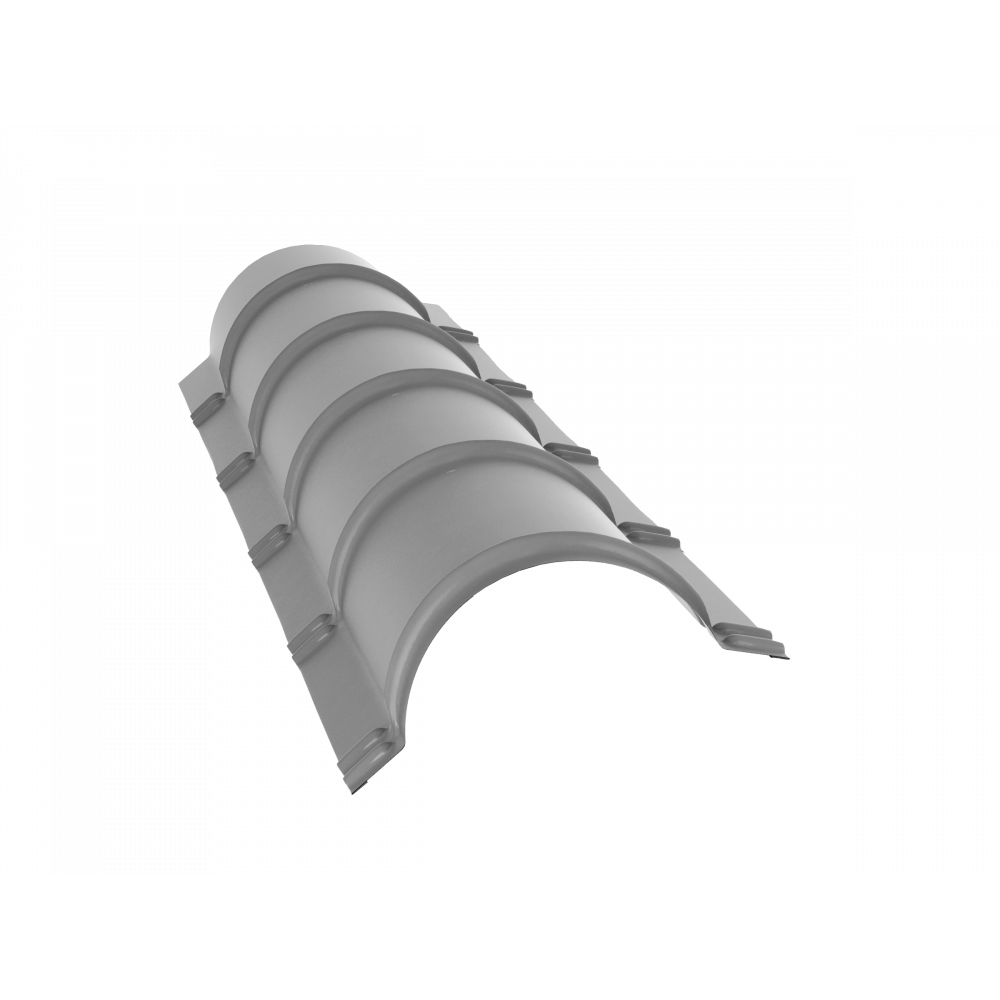 Конек полукруглый / полукруглый малый — защищает листы металлочерепицы от смещения при сильных порывах ветра.